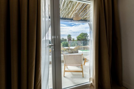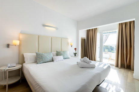 The Premium Double Room has been designed for those seeking extra comfort, privacy, and well-being during their stay. Located on the first floor, these rooms feature a spacious and fully equipped private terrace, perfect for enjoying the sun and complete privacy, with direct views of the central pool.